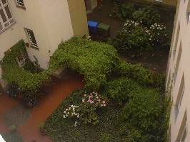 ...der Blick aus dem Fenster zeigt einen gepflegten Innenhof.